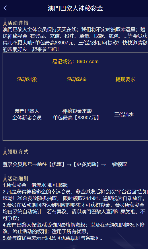 神秘彩金有号的可以上去看看 官网 8907.com