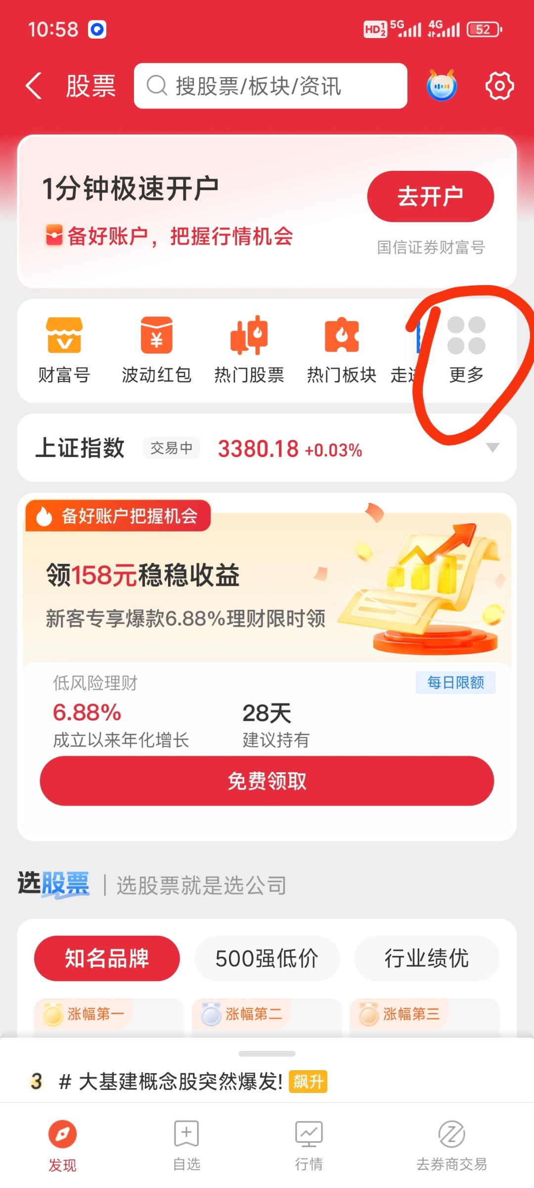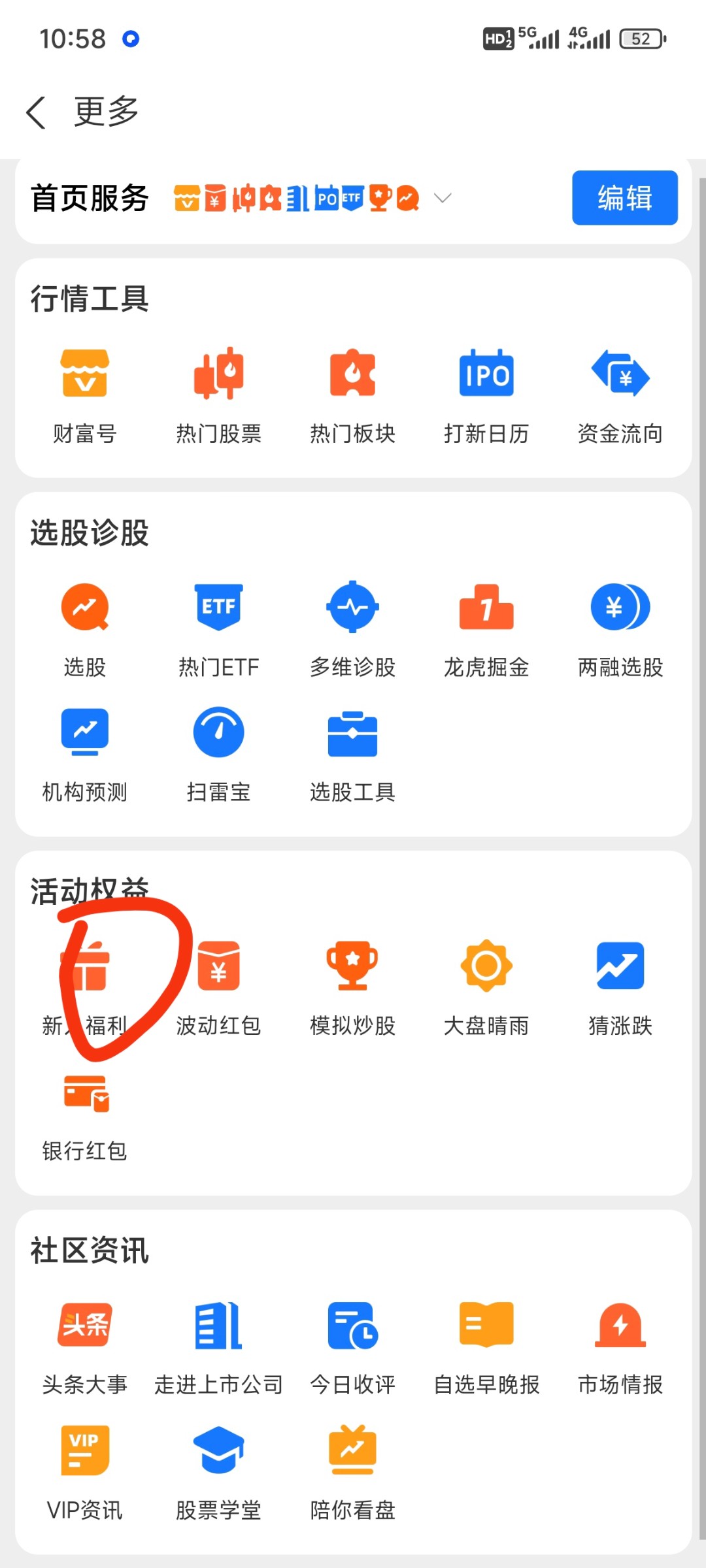 或者点股票,更多,新人福利