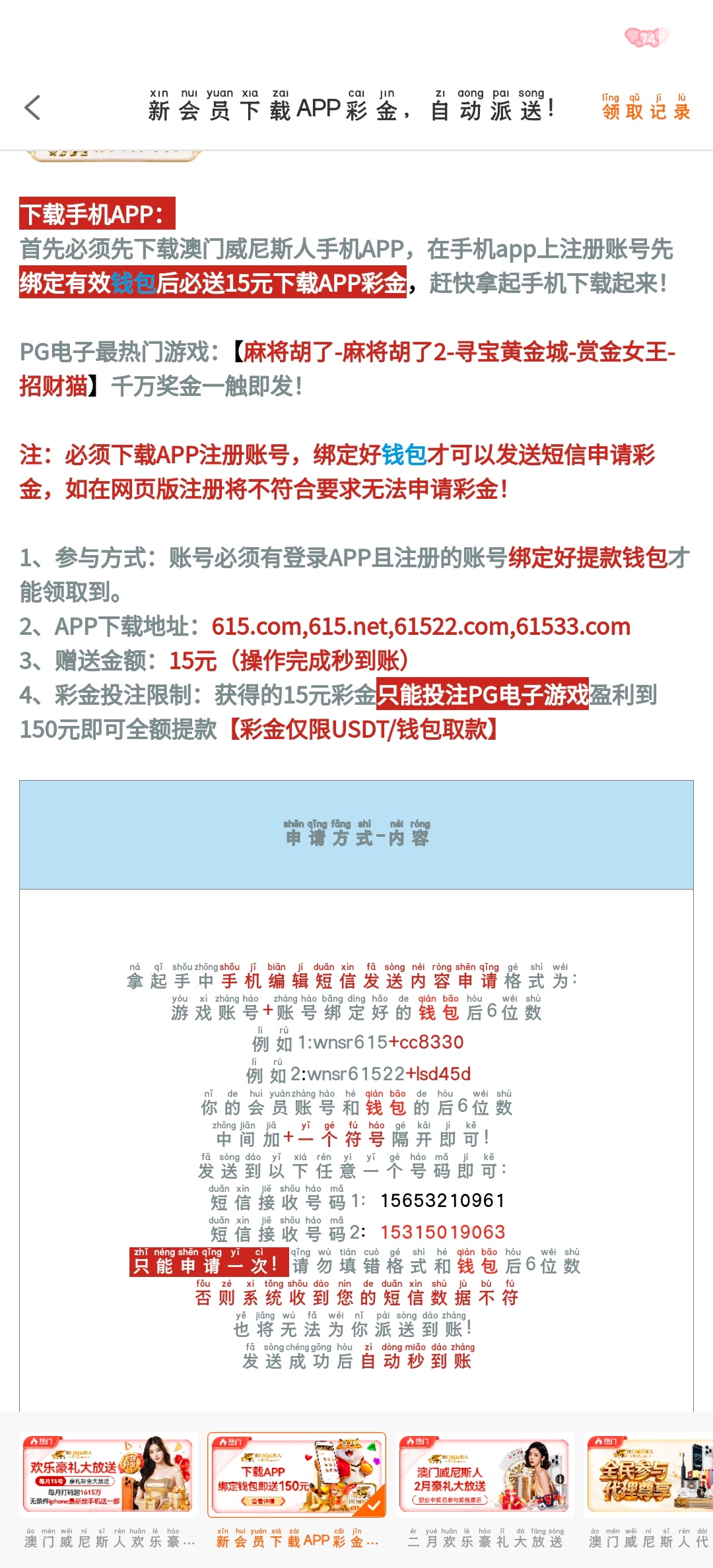 先下载APP再注册绑定钱包发短信秒15