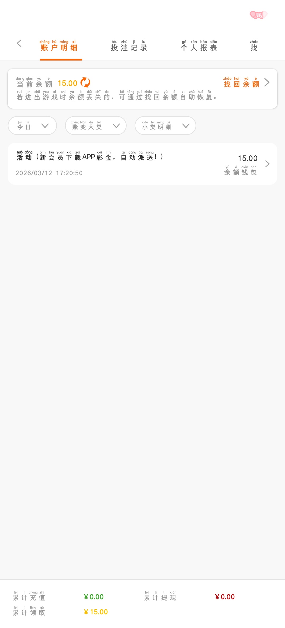出款情况:自测
