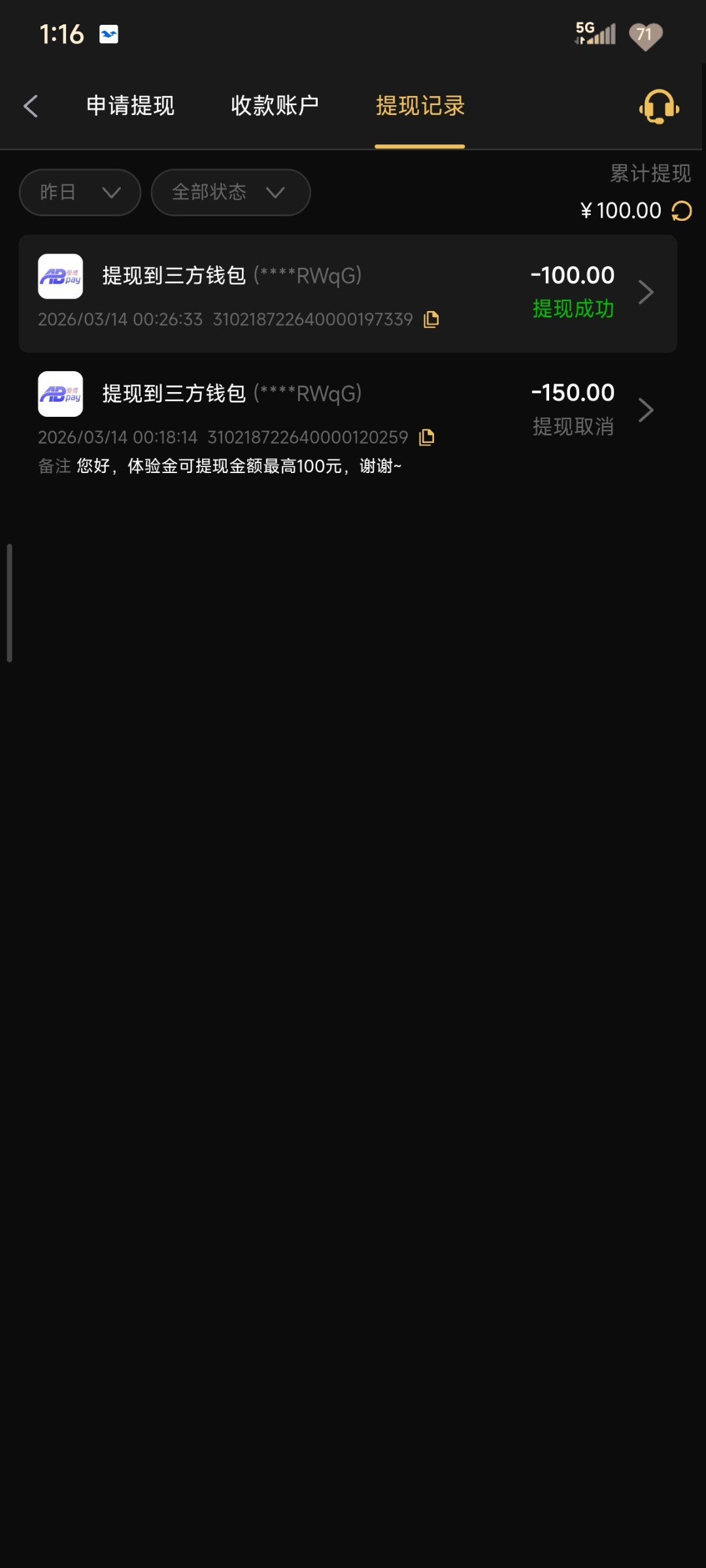 注册绑定AB钱包申请,我提了