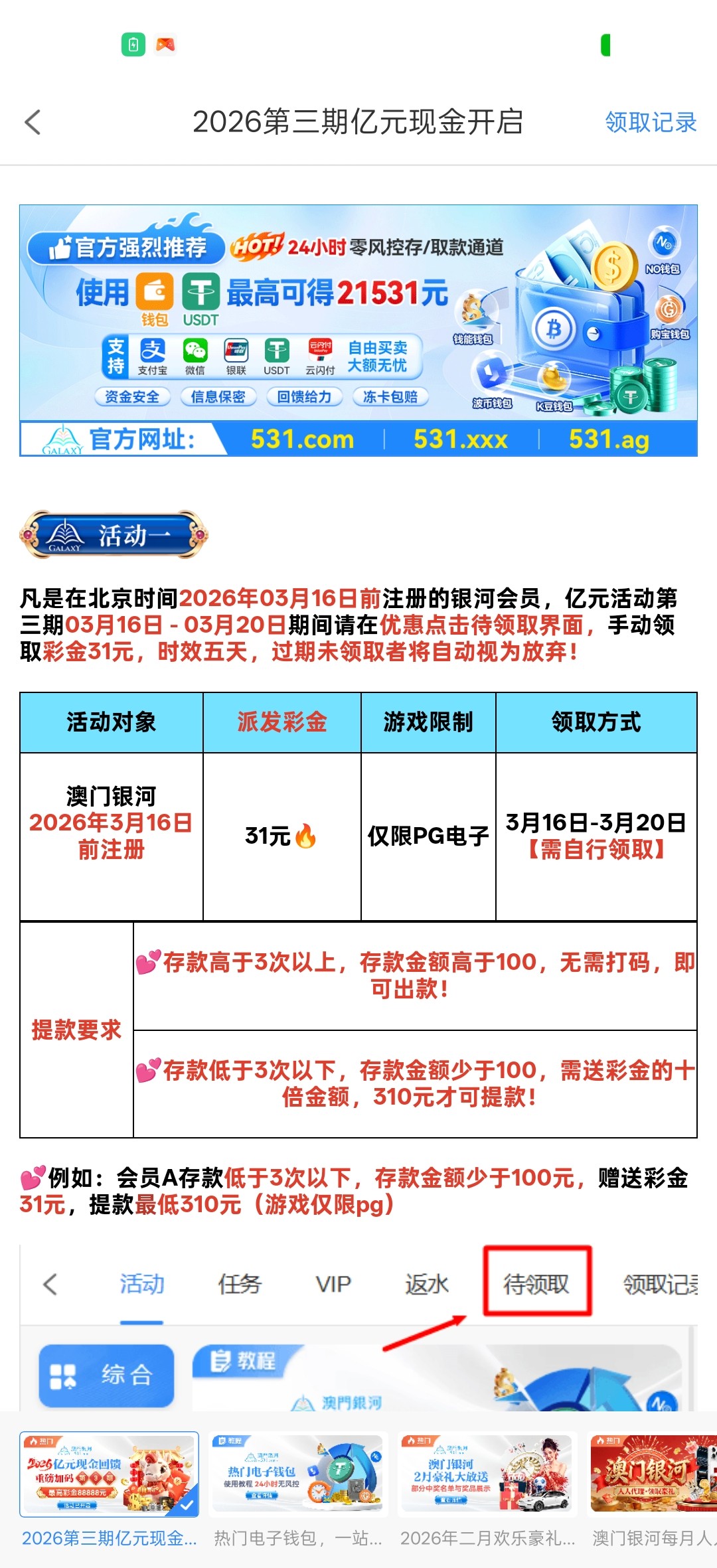 【银河531】—✅—历史注册送31