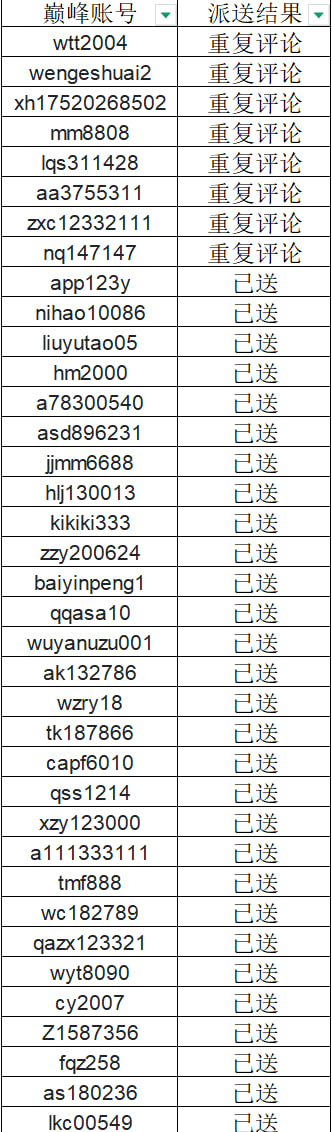 目前名额已经送完了,需要到20号以后才能送后面的,不闲时间久的可以等等,马上派送。目前已经送了30个名额,自行查看下面的表格。人头费达标,留言置顶帖,返现888!